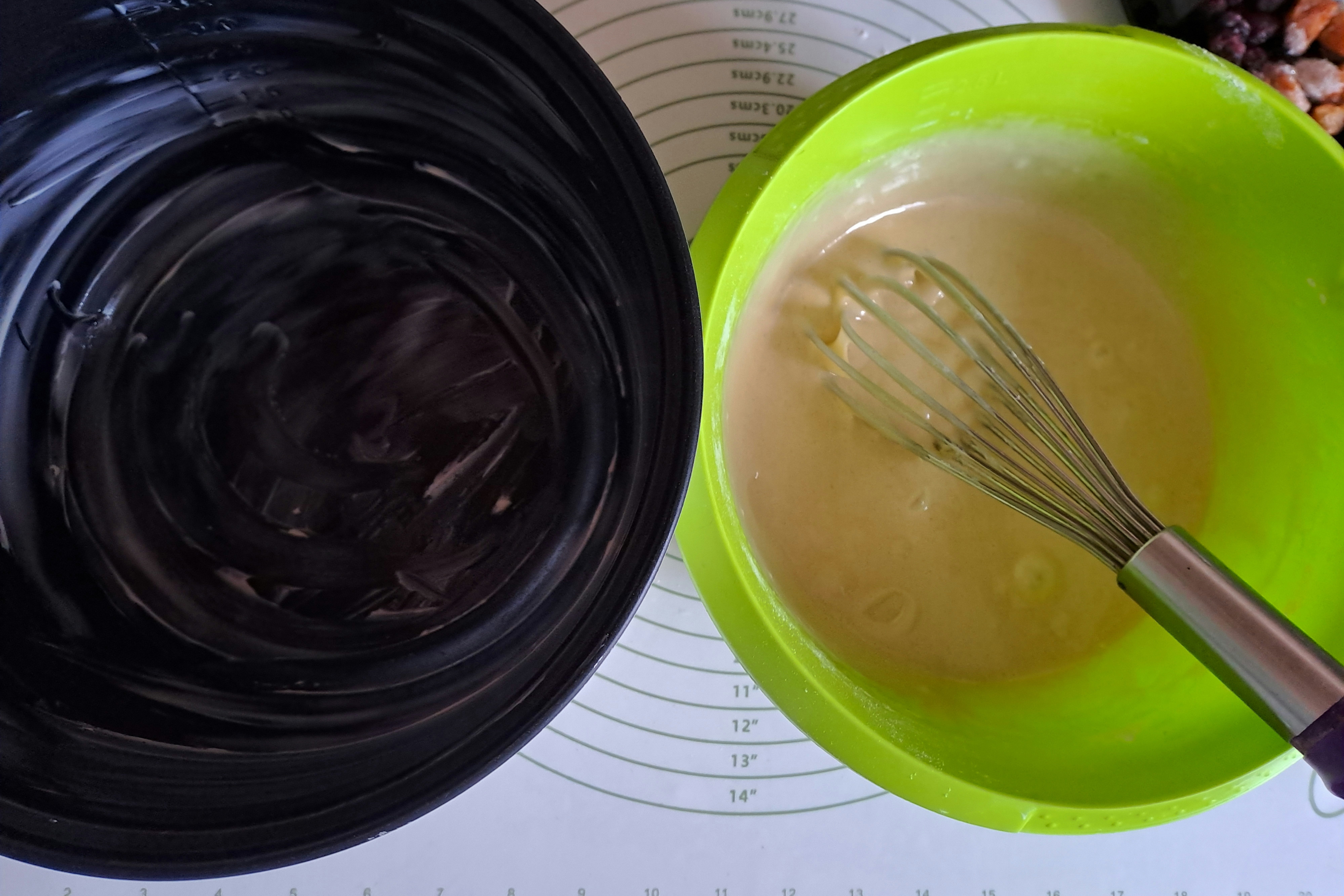 Авторка рецепта радить ще один варіант — тісто розділити на частинки для маленьких кексів (на 1/3 заповнити формочку) і випікати 20 хв при 180°С.