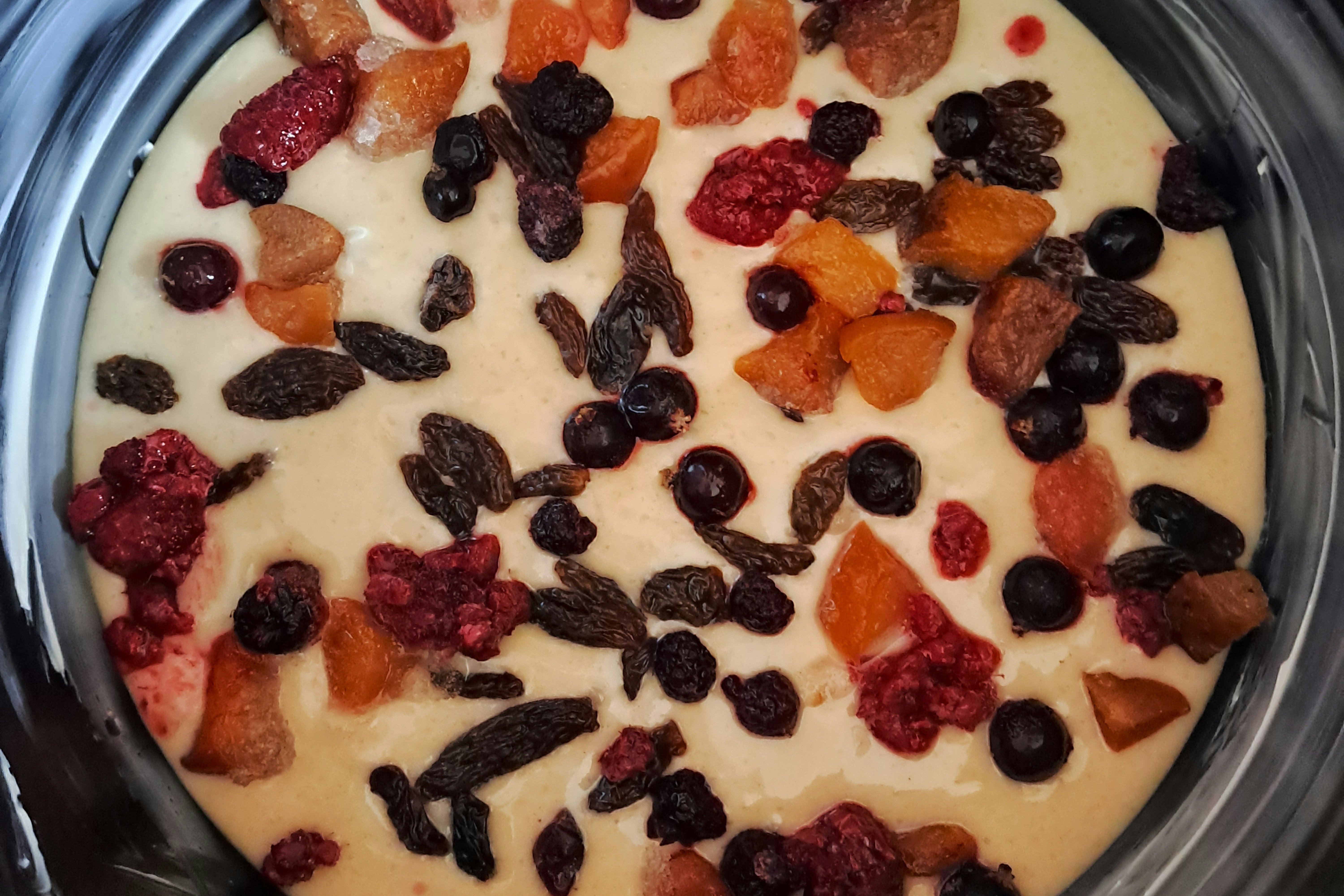 Готуємо швидкий кекс з нектаринами, ягодами та родзинками в мультиварці