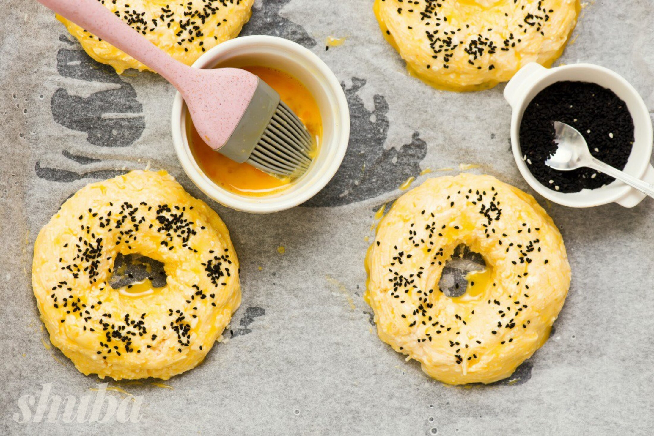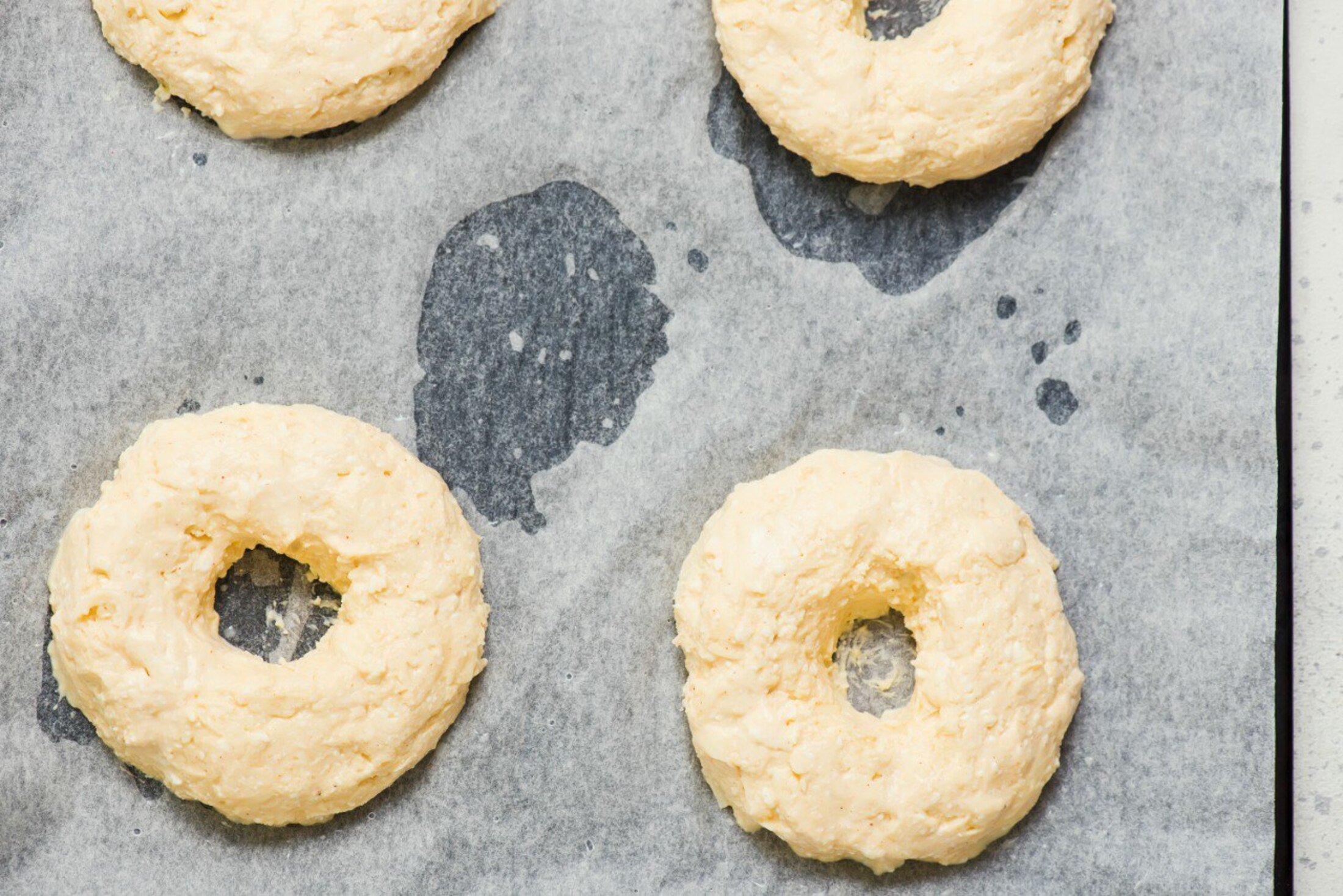 Тісто тут щільніше, ніж у класичних булочок, а готується на основі твердого та кисломолочного сирів. Бейгли зручно формувати вручну, але важливо робити їх однакового розміру, щоб вони рівномірно пропеклись. Подавати страву краще вже охолоджену, так вона тримає форму.