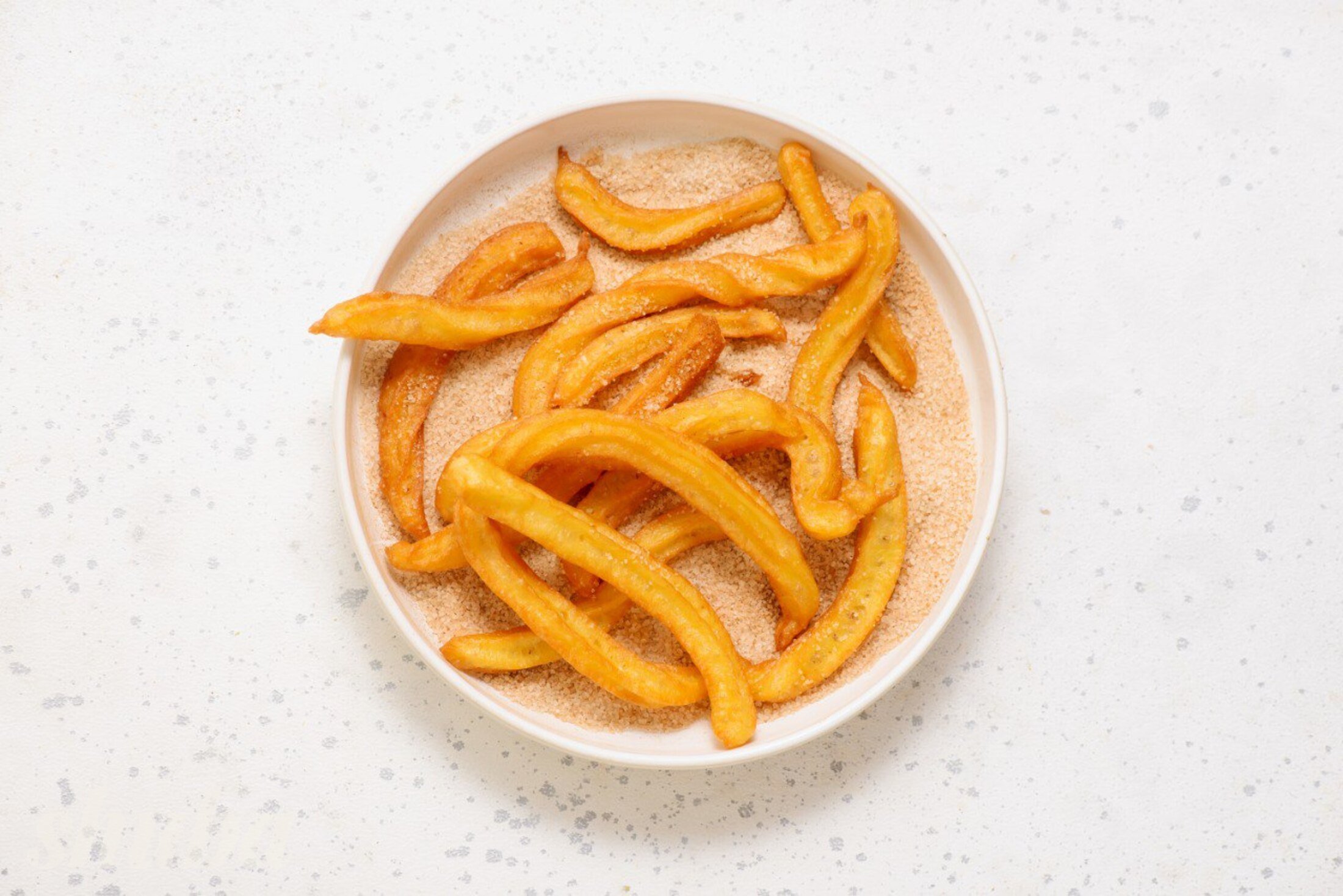 Змішай цукор і корицю для посипки. Ще гарячі чурос обваляй у суміші.