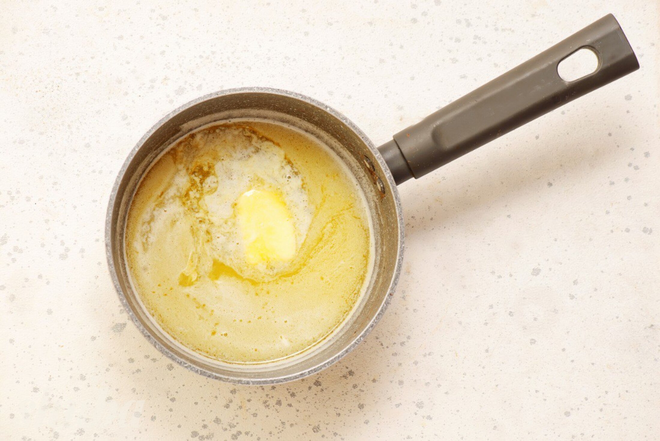 У каструлі з’єднай вершкове масло, цукор, сіль і воду. Постав на середній вогонь і прогрій, поки масло повністю розчиниться.