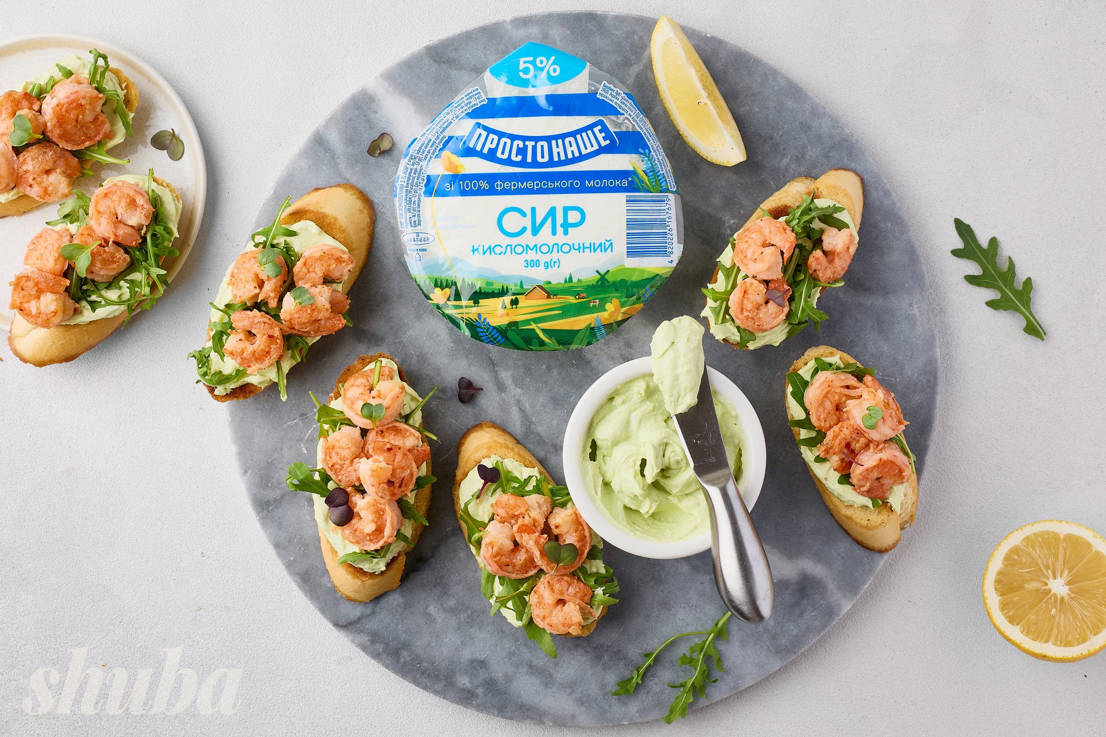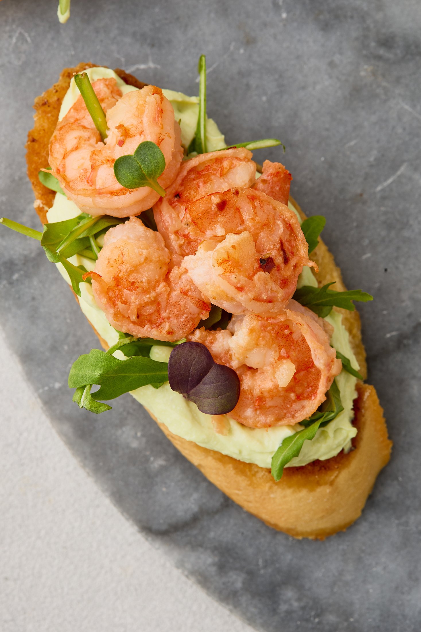 Рецепт брускет з креветками й кремом з авокадо та сиру