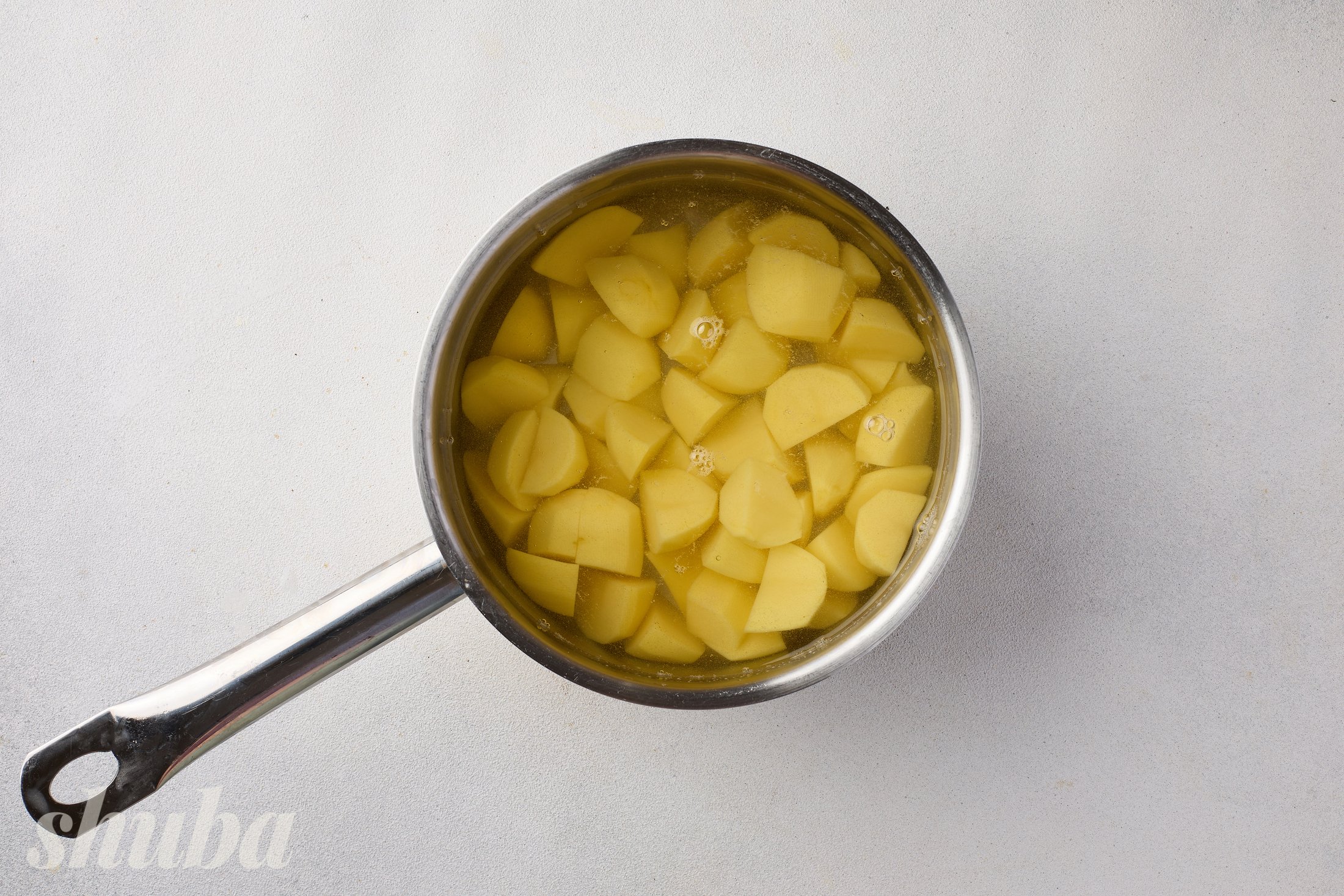 - картоплю вари лише великими шматками, щоб вона не набрала зайвої води, так пюре буде насиченим на смак;