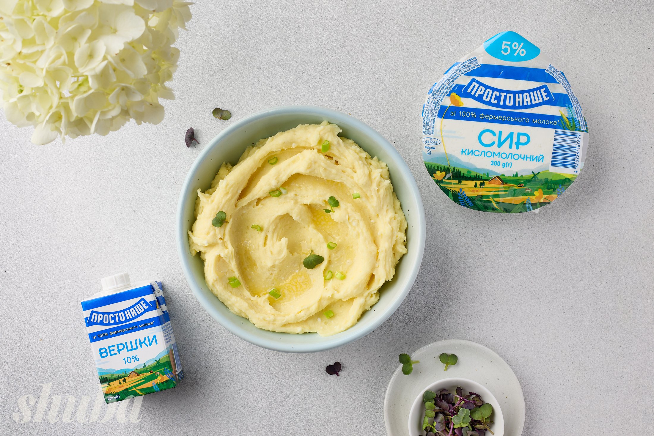 Для справді смачного пюре використовуй якісні молочні продукти від надійного виробника. Ми взяли вершки та сир «ПростоНаше», бо знаємо, що їх виготовляють зі 100% фермерського молока. Ніжний вершковий смак цих продуктів — саме те, що потрібно для нашого святкового рецепта.
