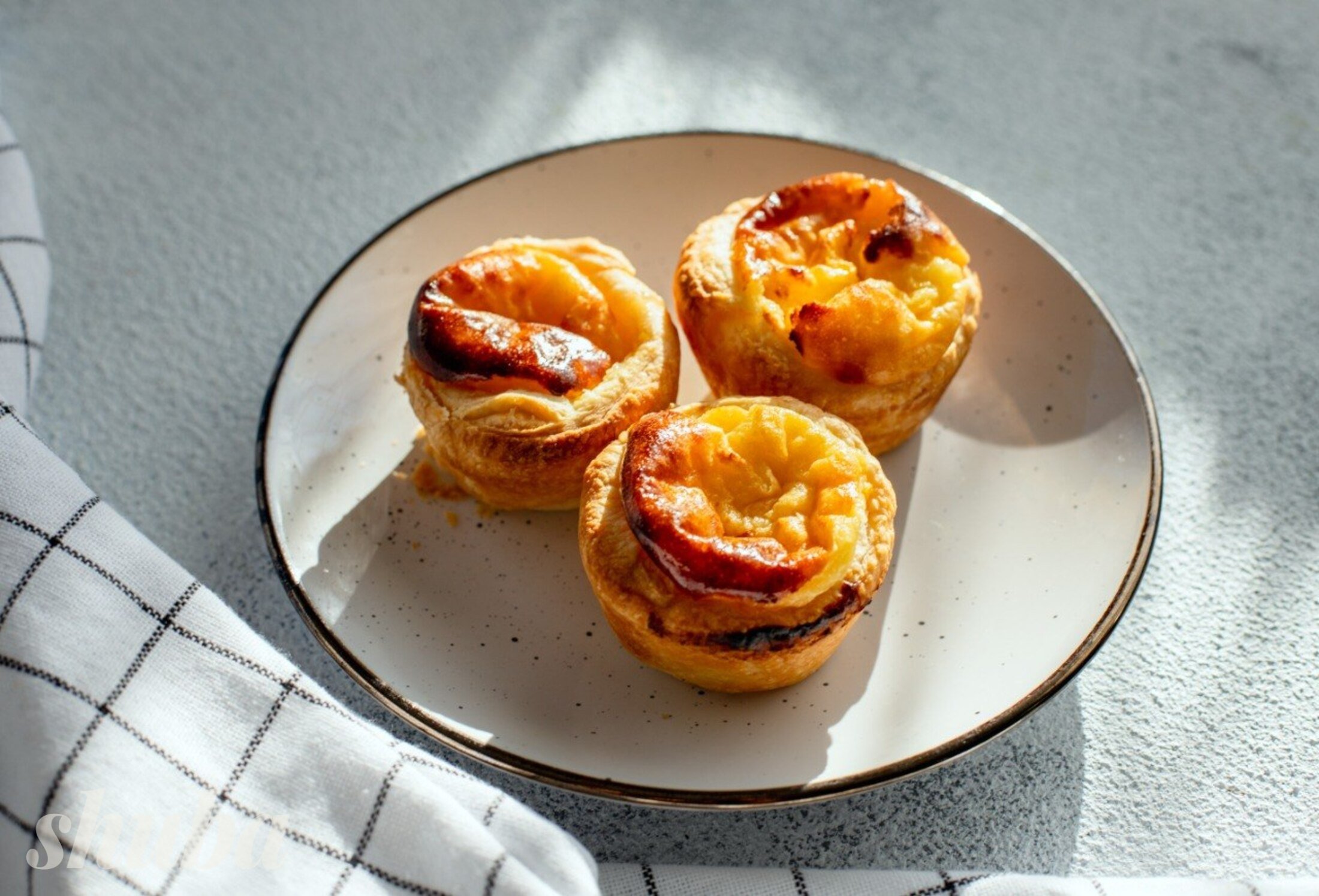 Португальські тістечка паштейш з листкового тіста — це поєднання хрусткої основи й ніжного заварного крему з лимонною ноткою. Крем готується у два етапи: спочатку сироп з лимонною цедрою і корицею, а потім молочна основа. Випікати тістечка потрібно при дуже високій температурі, щоб отримати золотисту верхівку з карамельними плямами.