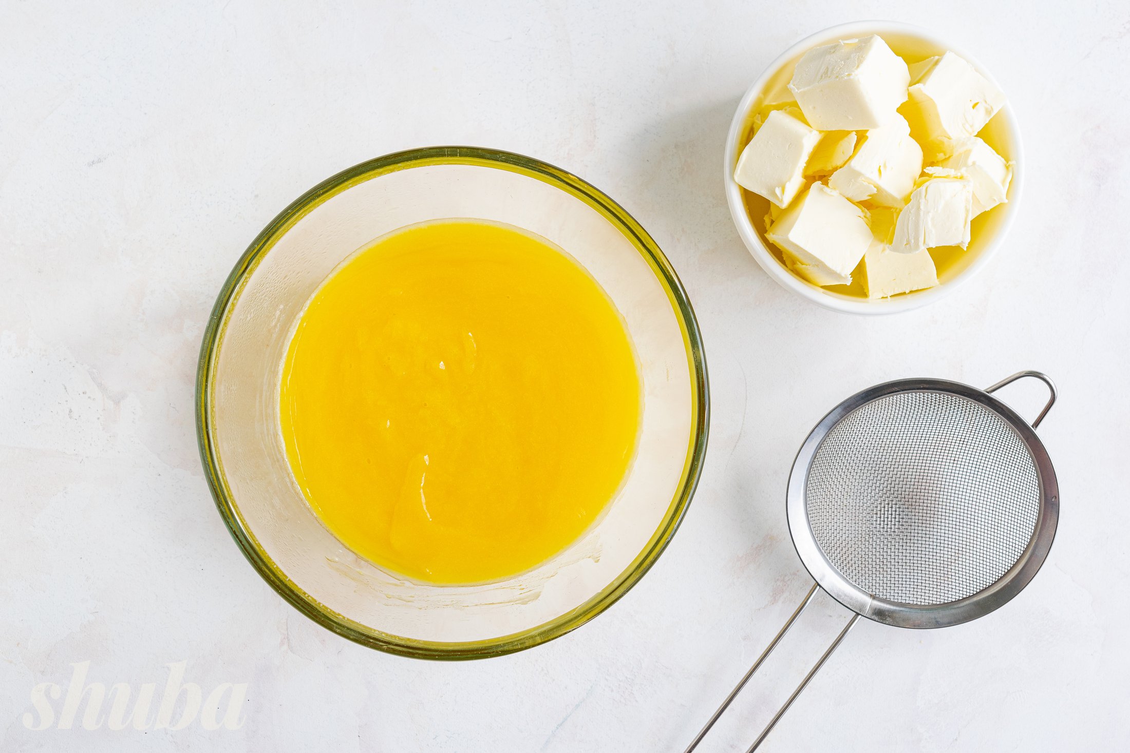 Пропусти курд через сито, щоб позбутися цедри.