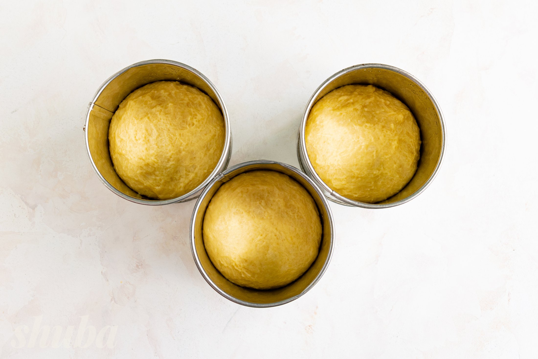 Розклади готове тісто у форми, заповнюй їх на третину. Дай паскам постояти ще 20-30 хвилин, щоб вони підросли до верху форм.