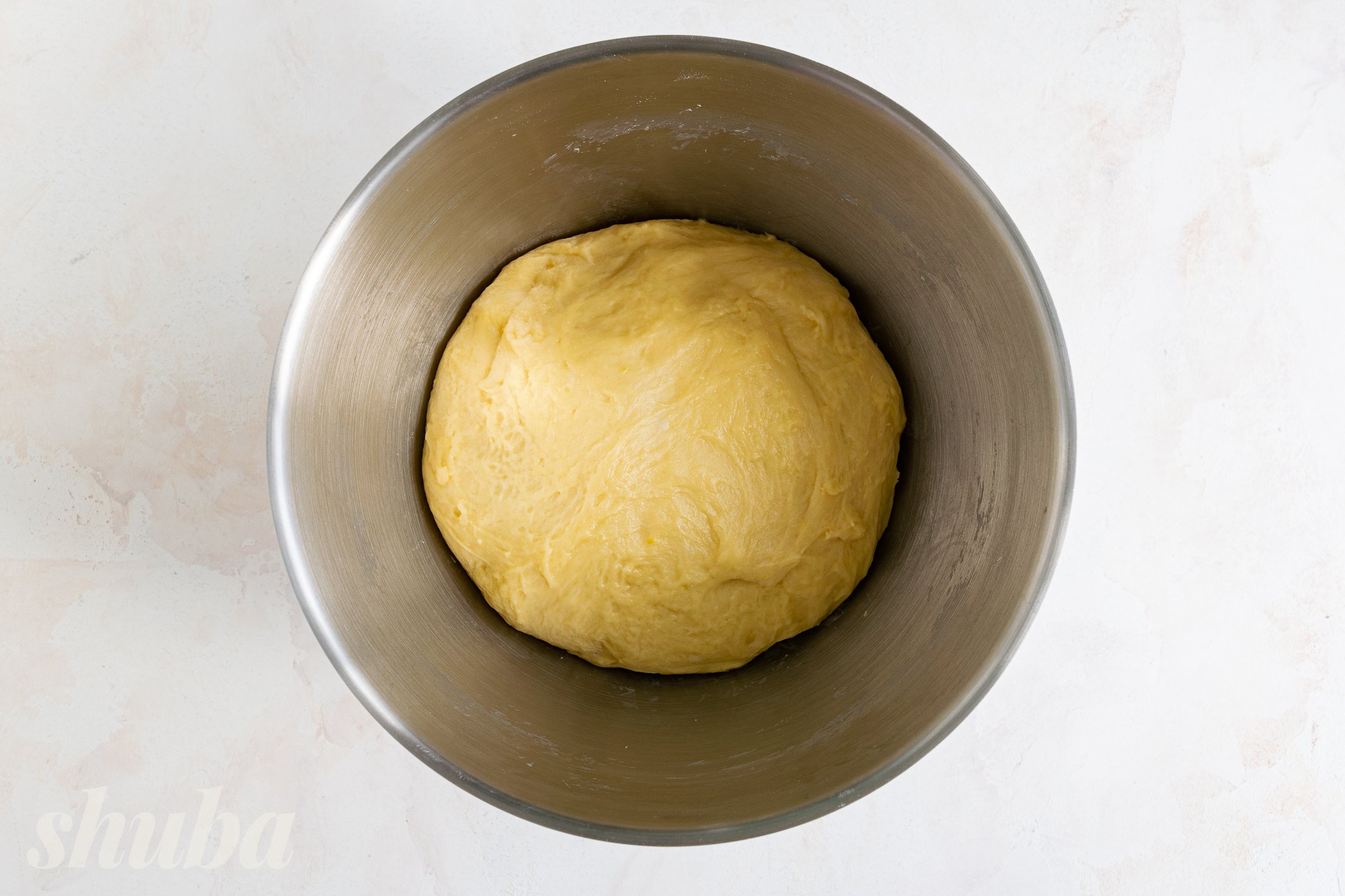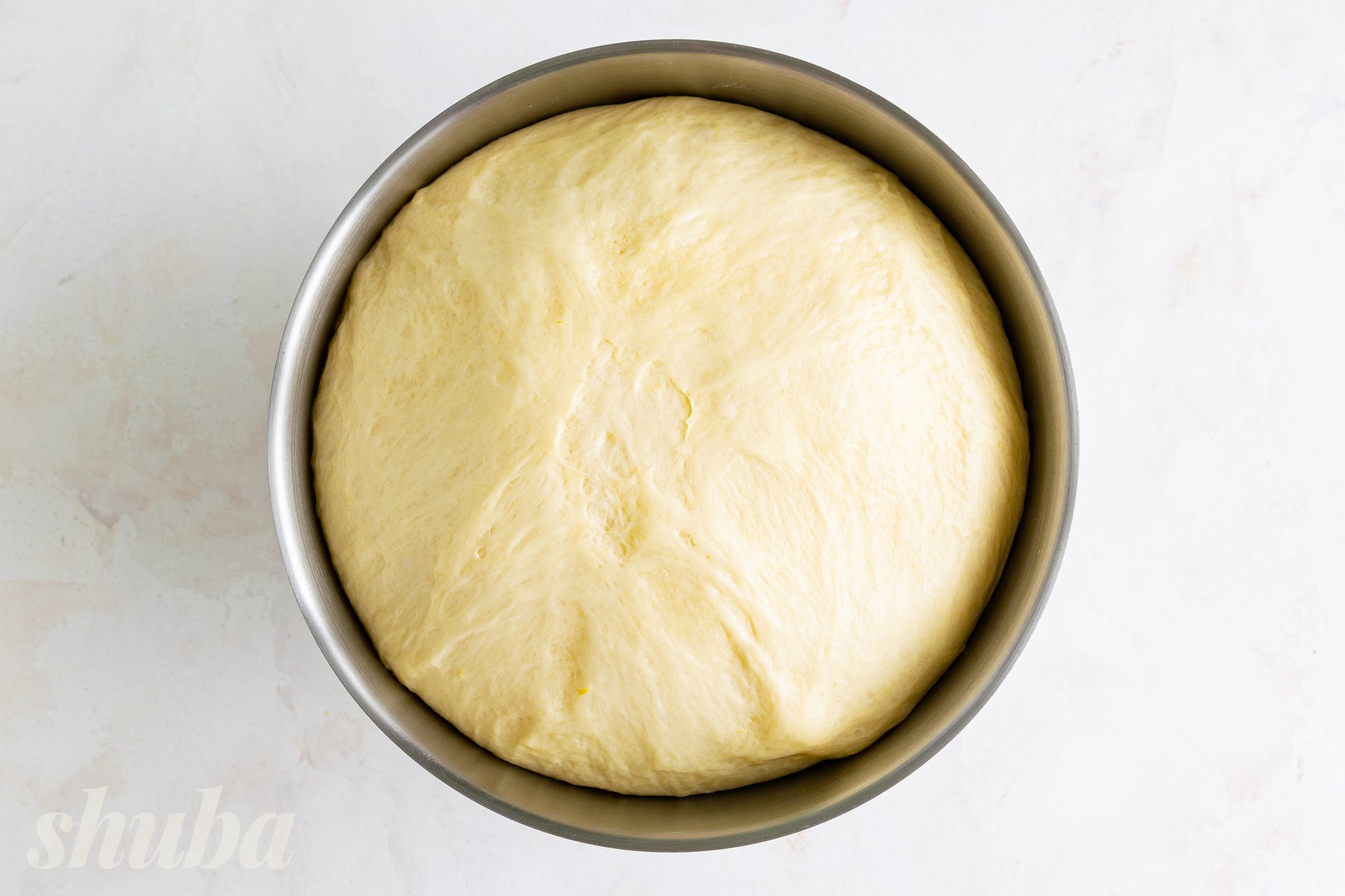 Накрий тісто рушником і постав у тепле місце на 1-1,5 години, щоб воно добре піднялося.