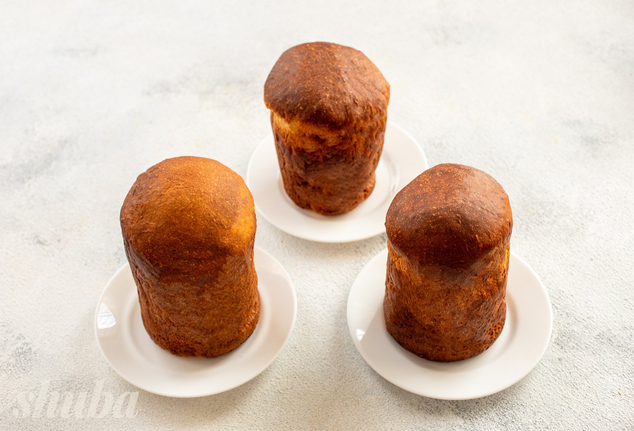 Випікай при 180 °C приблизно 30 хвилин. Якщо верх швидко темніє — накрий фольгою. Остуди паски, періодично перевертай на боці.