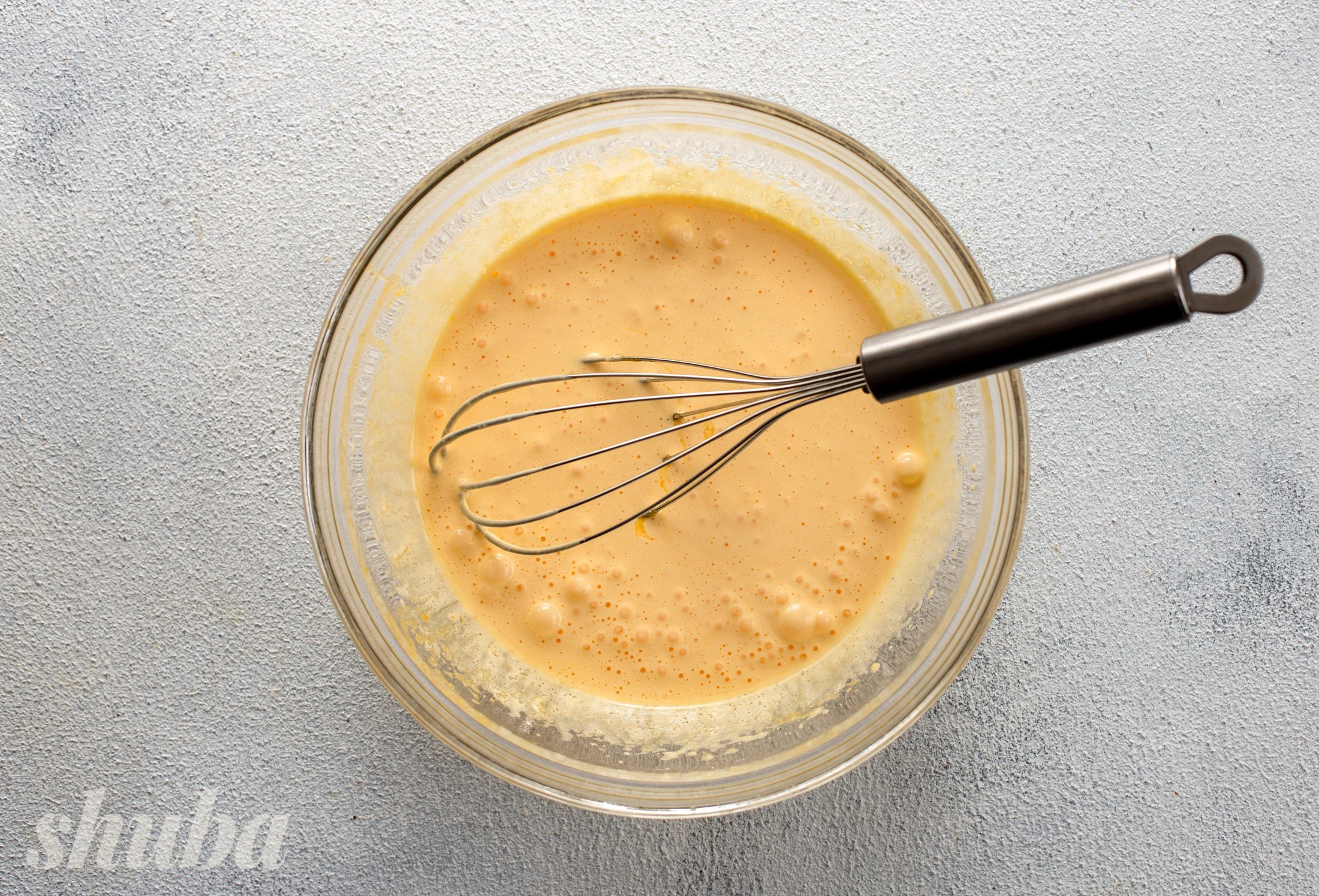 Відділи білки від жовтків. Жовтки збий із 130 г цукру та ванільним цукром до світлої пишної маси. Білки залиш для глазурі.