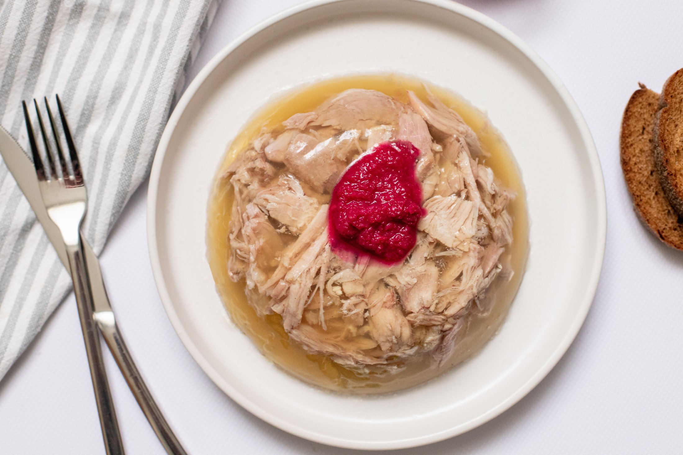 Лінивий холодець за 15 хвилин — це точно не про цей рецепт, тут важливо не поспішати. Довге томління на слабкому вогні витягує максимум смаку в бульйон.