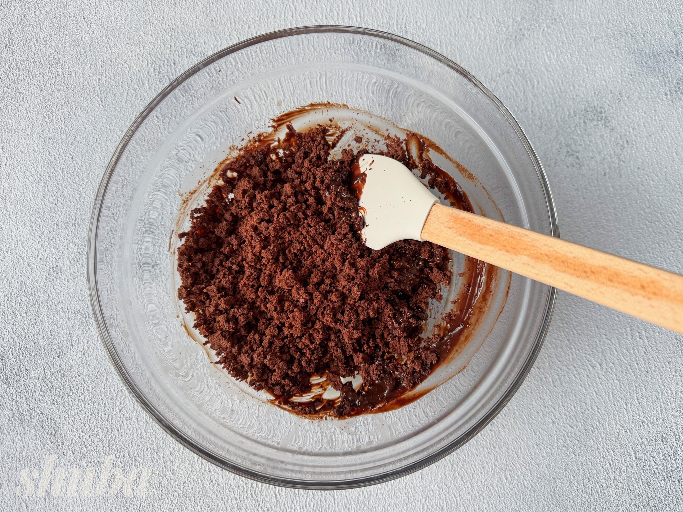 Розтопи шоколад з молоком до однорідності. Додай ганаш до крихти й перемішай до пластичної маси.