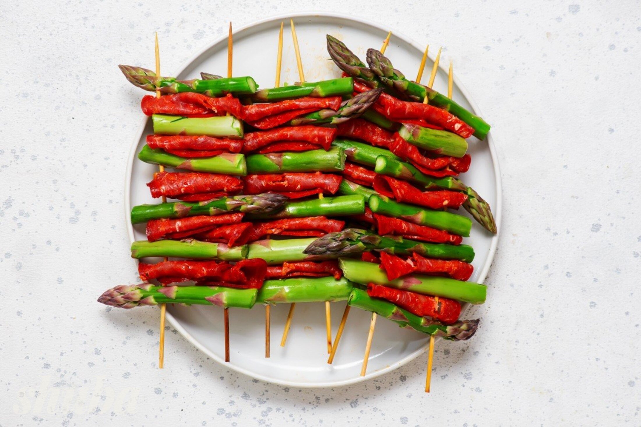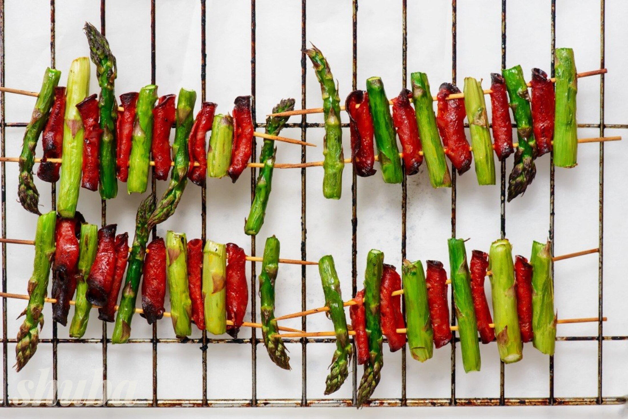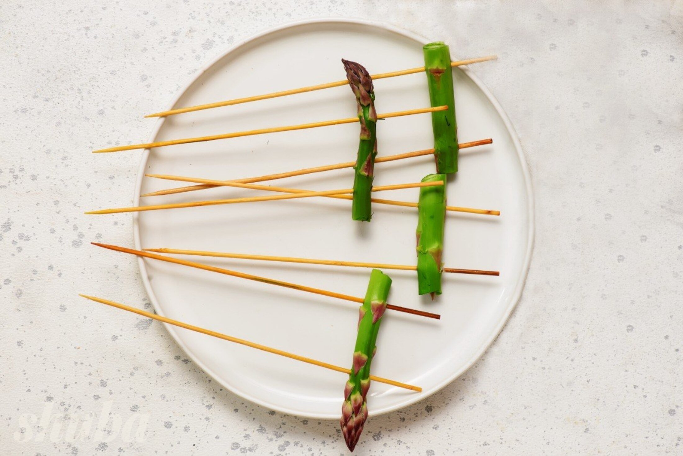 Врахуй декілька важливих моментів. Спаржу не потрібно готувати довго, кількох хвилин на сильному вогні достатньо, щоб вона залишилась соковитою і не втратила текстуру. А шпажки краще замочити у воді — це допоможе уникнути підгоряння під час смаження.