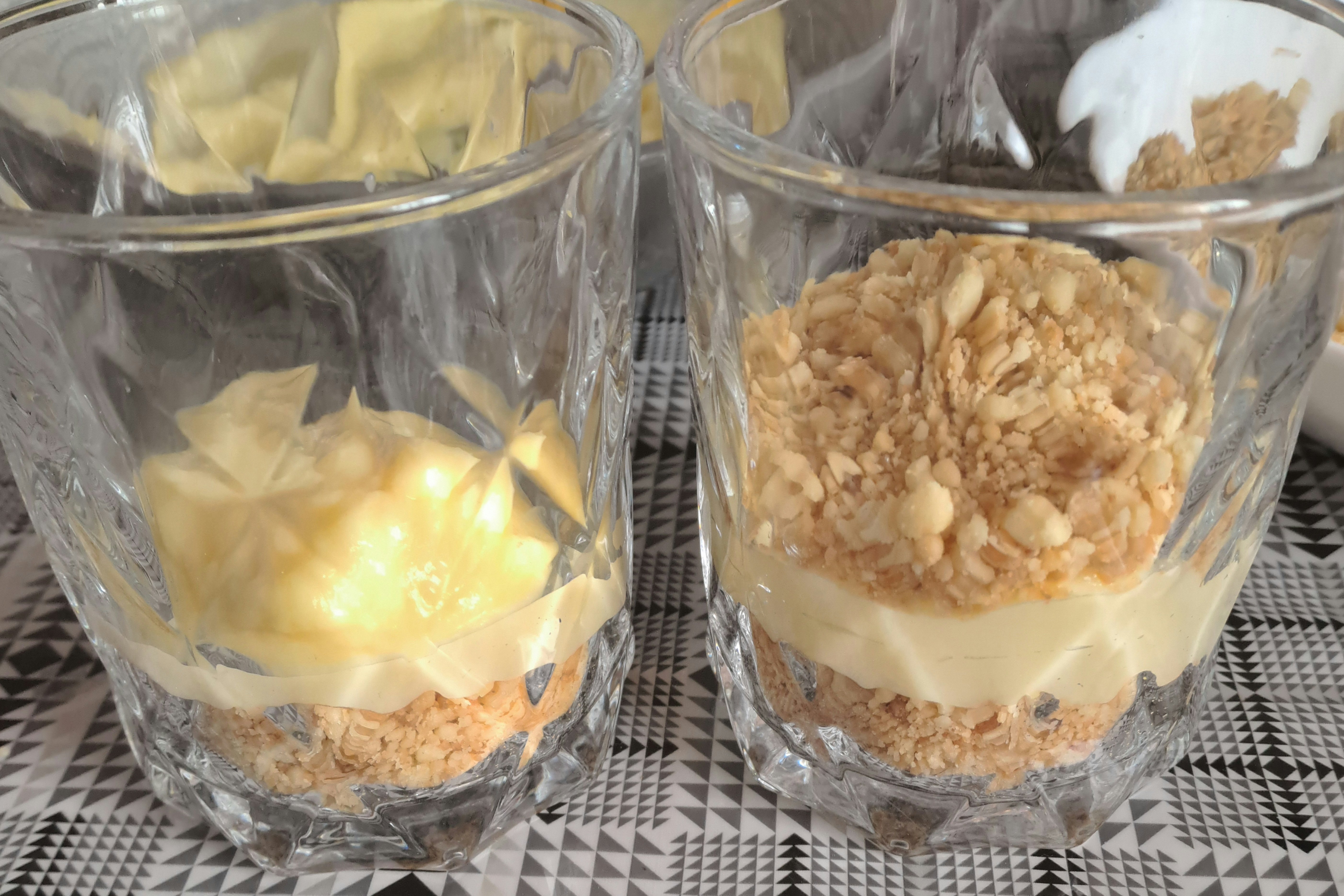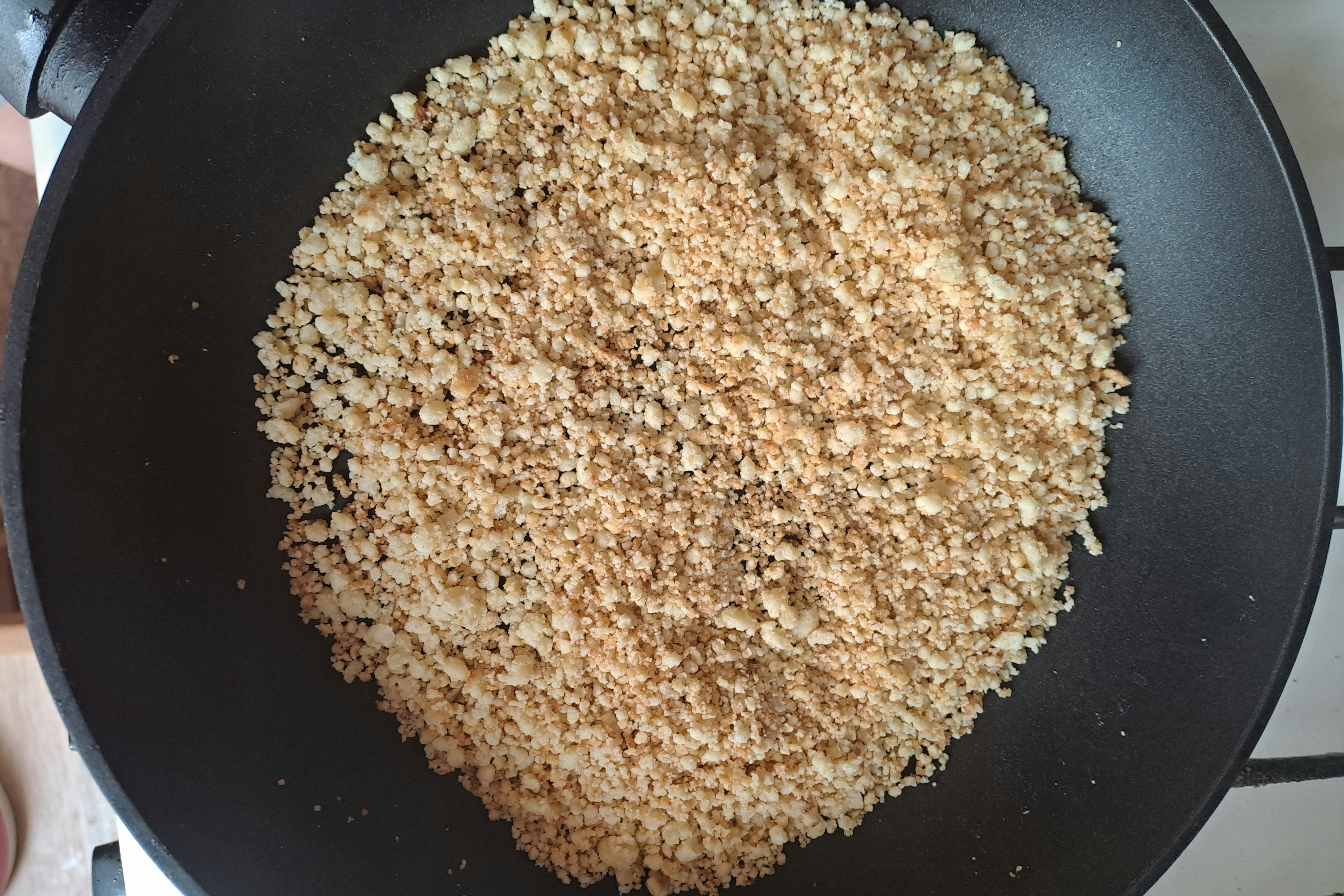 Лінивий «Наполеон» у склянці — тісто (крихту) обсмажуємо на сковороді