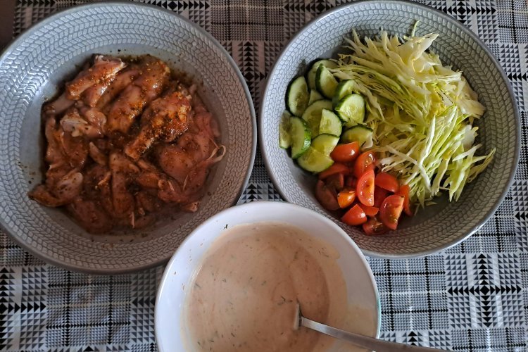 Домашня соковита шаурма зі смачним кефірним соусом — рецепт на 4 порції