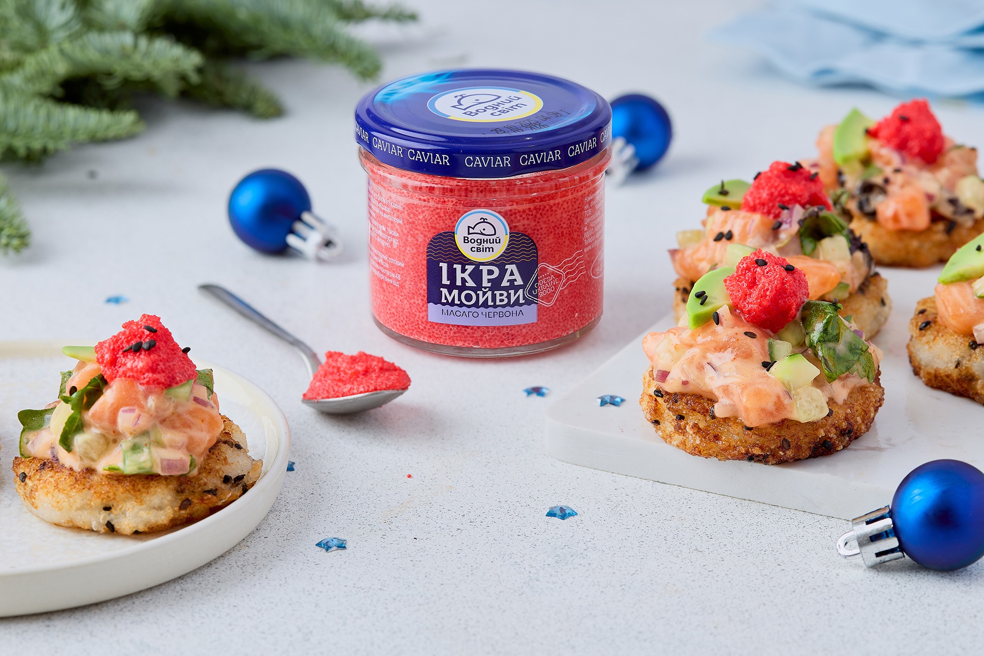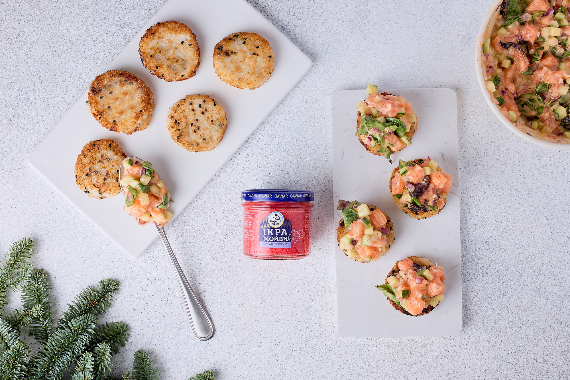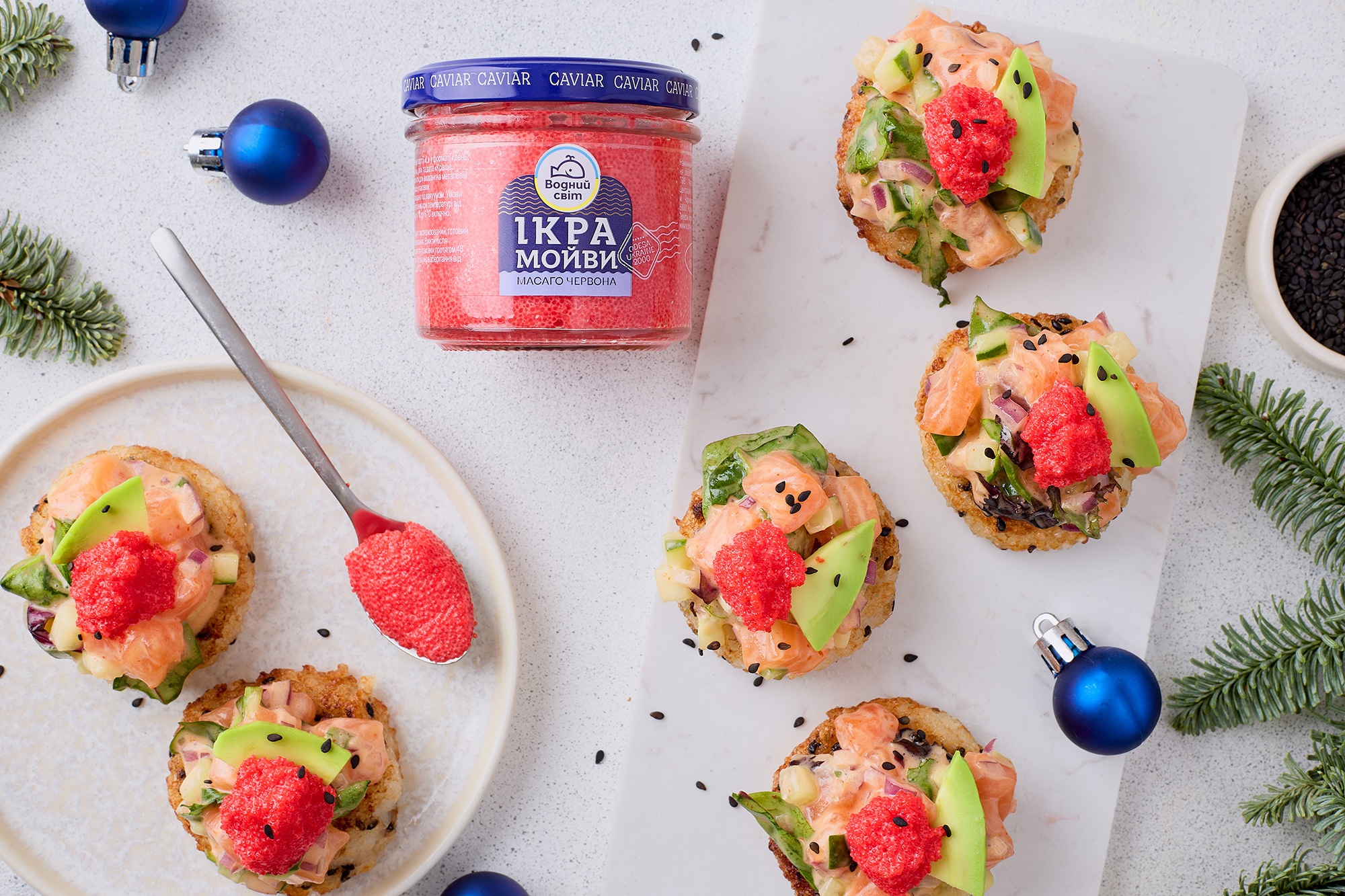 Салат з ікрою масаго на рисовій подушці