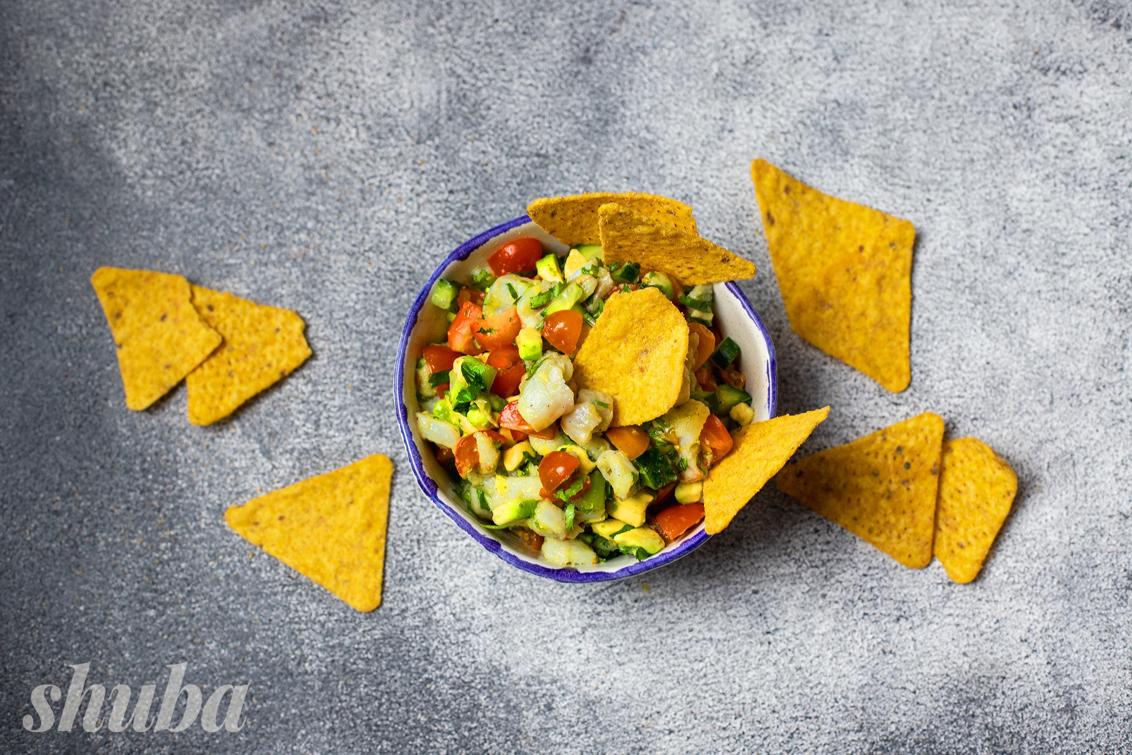 Подавай севіче з чипсами з тортильї або кукурудзяними.