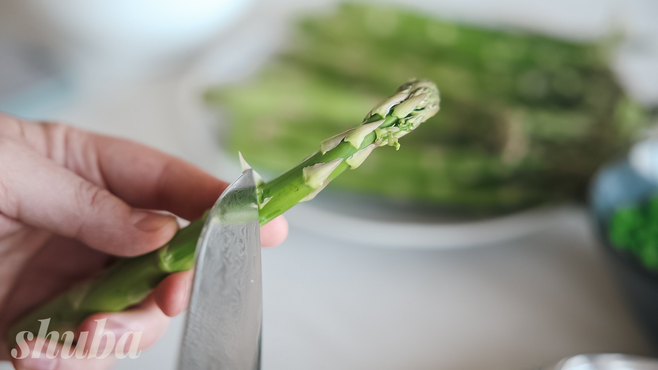 - Не забудь відламати грубу нижню частину стебла спаржі. Краще не відрізати, а саме відламувати — так відламається саме те, що потрібно.